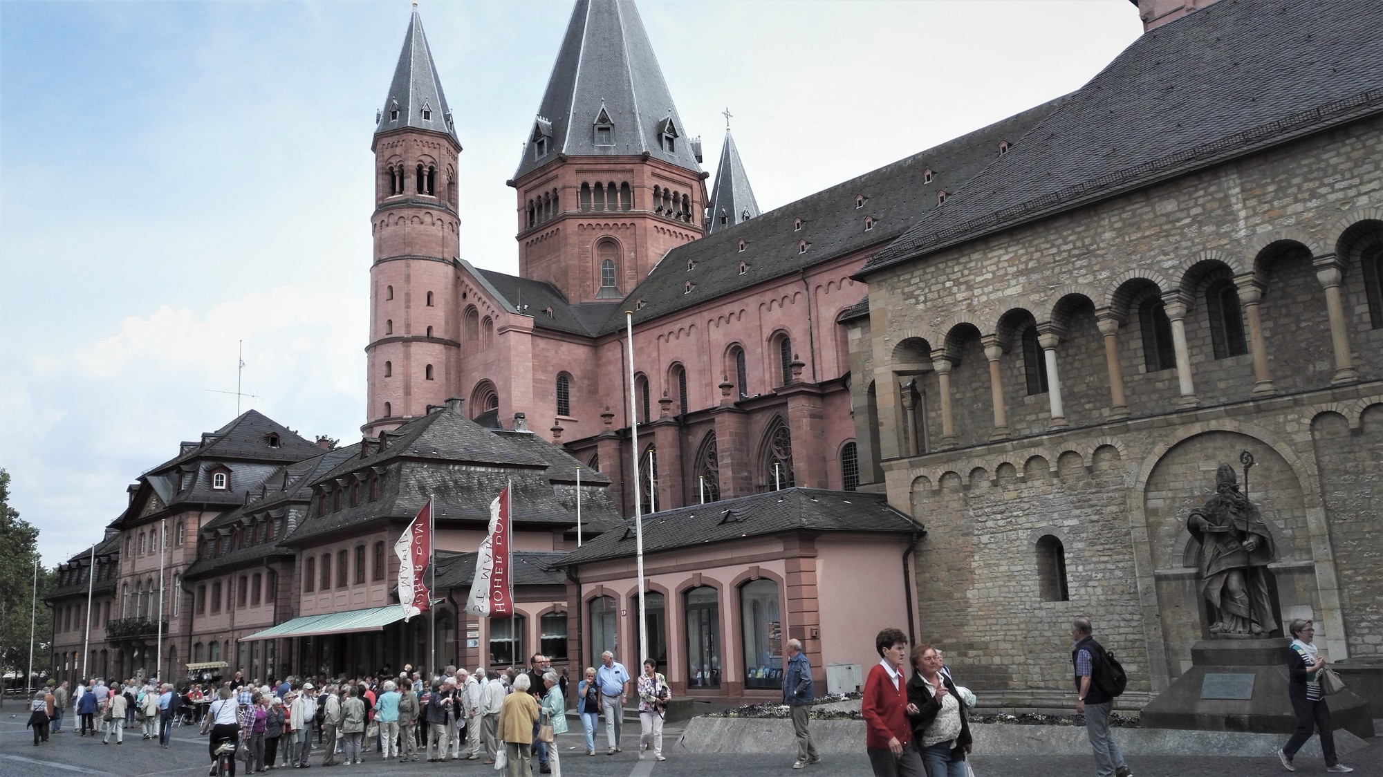 Ist es da nicht sinnvoll, diese alte Verbindung zu Mainz ins Gedächtnis zu rufen? Aus diesem Grunde lud das Senioren-Forum Aschaffenburg, Dekanate Ost/West am 15. Mai 2018 zur Dekanatswallfahrt nach Mainz ein. Neun Busse mit 370 Senioren/innen folgten der Einladung in den St. Martin’s Dom, ein weiterer Anknüpfungspunkt zum Patron der Stadt Aschaffenburg, St. Martin. Die Teilnehmer/innen kamen aus den Pfarreien Dammbach, Glattbach, Haibach/Grünmorsbach, Johannisberg, den Pfarreien Gemeinschaften aus dem Hochspessart, dem Laufachtal, Maria an der Sonne, der PG Regenbogen und dem Vorspessart.