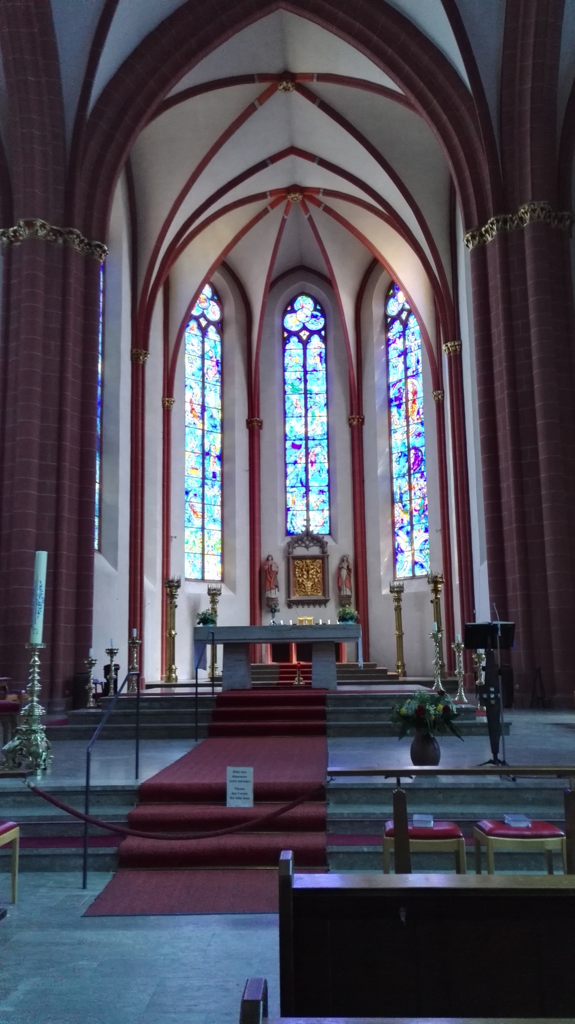 Vor und nach dem Gottesdienst begrüßten sich die Gruppen. Der Tag wurde von jeder Gruppe selbst gestaltet. Die Gruppe Haibach besuchte die Chagall Fenster in der Stephanskirche, die mit ihren 18erlei Blautönen die Kirche im Sonnenlicht mystisch erscheinen ließ. Der Ausklang fand im Kloster Eberbach, dem Drehort vom Film „Im Namen der Rose“ statt. Sicherlich gab dieser Tag Anregung für weitere private Erkundungen in und um Mainz, des ehemaligen, kirchlichen Zentrums von Aschaffenburg.