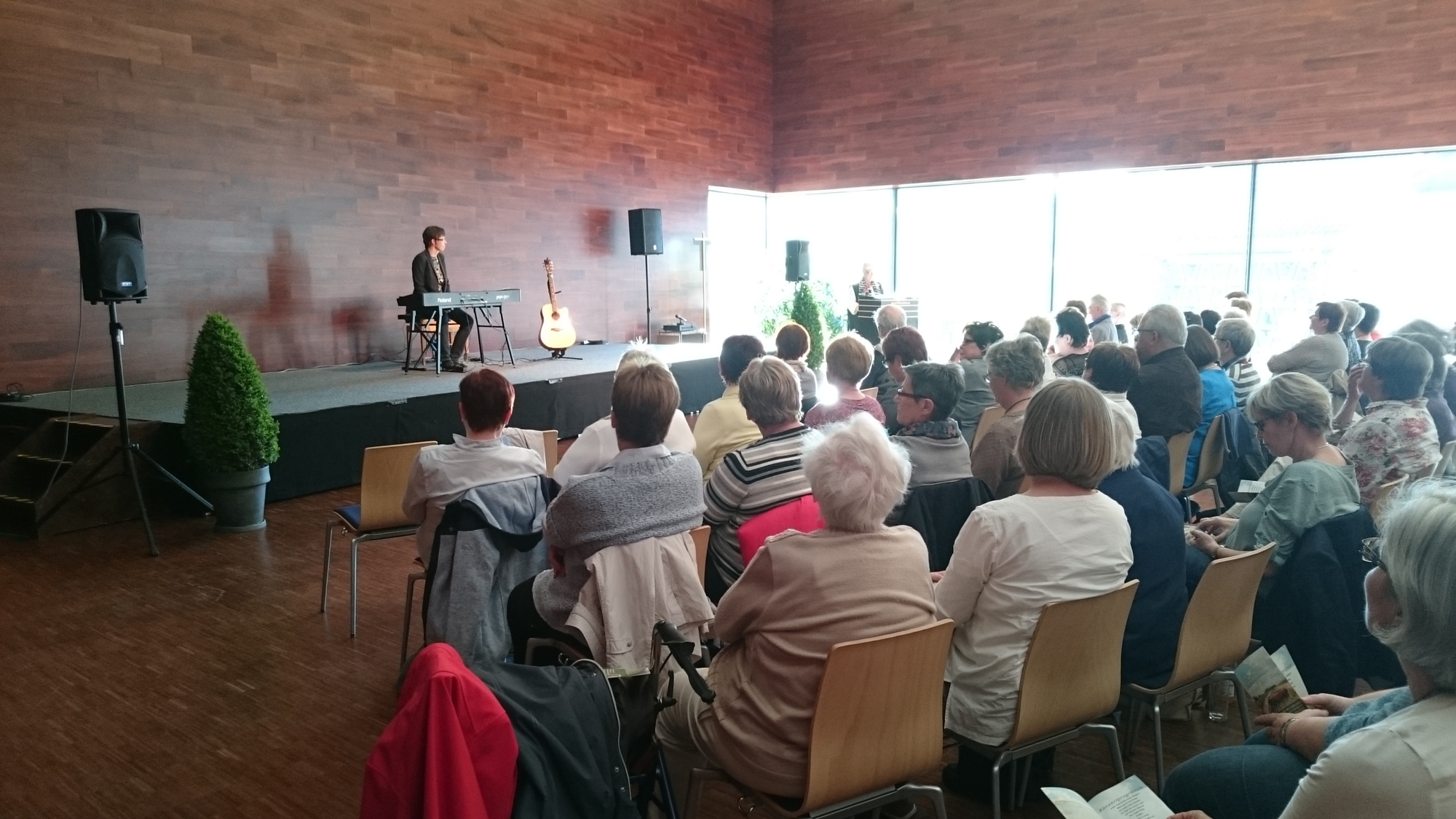 Mehr als zum Schmunzeln war die Zugabe über das „Rollende R“. Stefanie Schwab erzählte darin, dass sie ohne Erfolg versucht habe, ihr rollendes „R“ zu unterdrücken und zum Entschluss gekommen sei, dass dieses rollende „R“ einfach zu ihr als waschechter Fränkin dazu gehöre. Spätestens beim Segenslied „Geh deinen Weg“ wurde auch dem letzten Gast klar, dass Stefanie Schwab das Leben im Licht ihres persönlichen Glaubens interpretiert und so von einer Liedermacherin zur Mutmacherin für die Menschen wird.